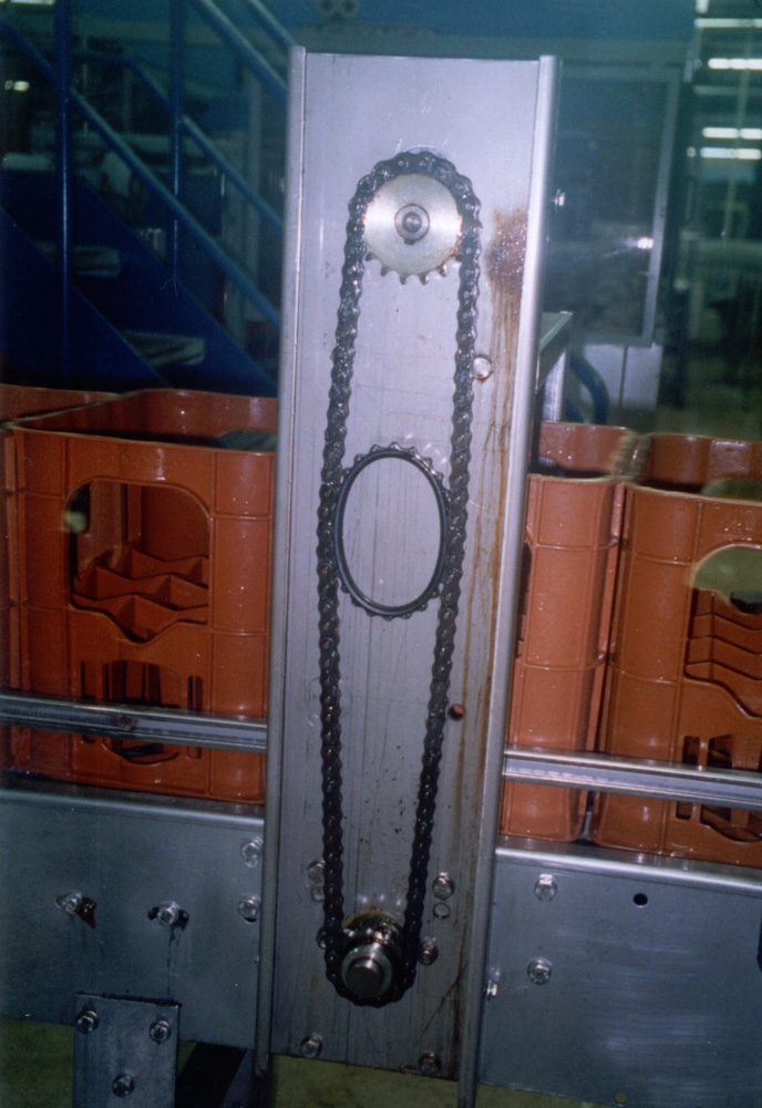 Stainless steel chain drive with ROLL-RING in a cleaning machine